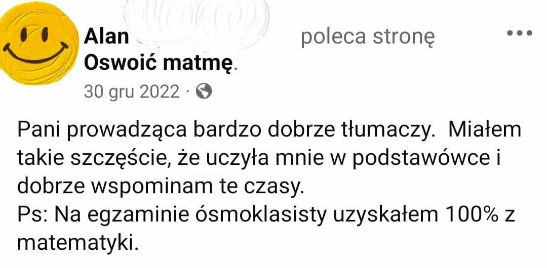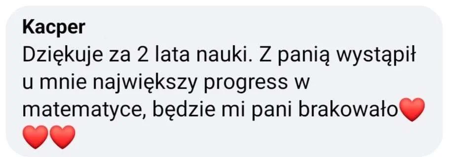 - Przygotowuję ósmoklasistów do egzaminu z matematyki aby mogli osiągnąć maksimum punktów i dostać się do wymarzonej szkoły średniej.